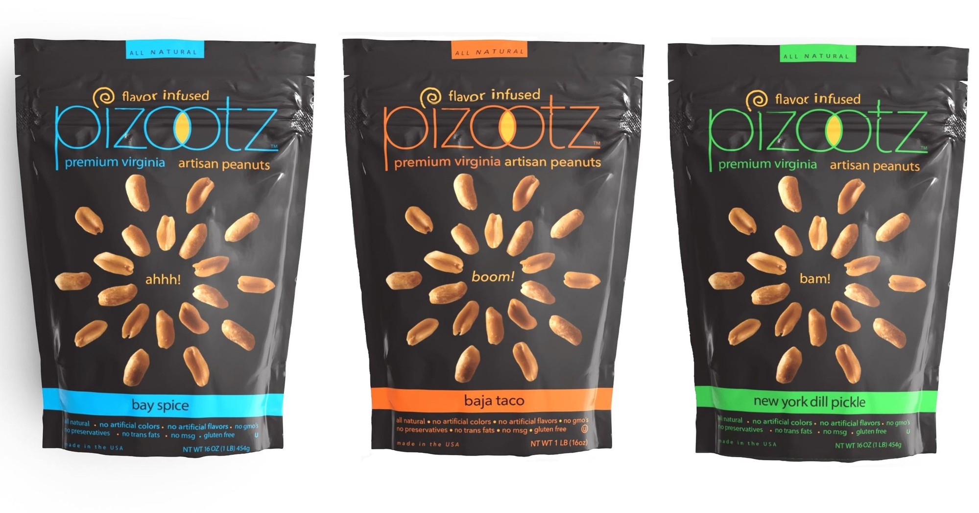 Pizootz Wow Variety Pack- 6 each 1.45 oz New York Dill, Baja Taco, Bay Spice-Flavor Infused Peanuts-Premium Virginia Gourmet Artisan Vegan Peanuts - (18) 1.45 oz bags