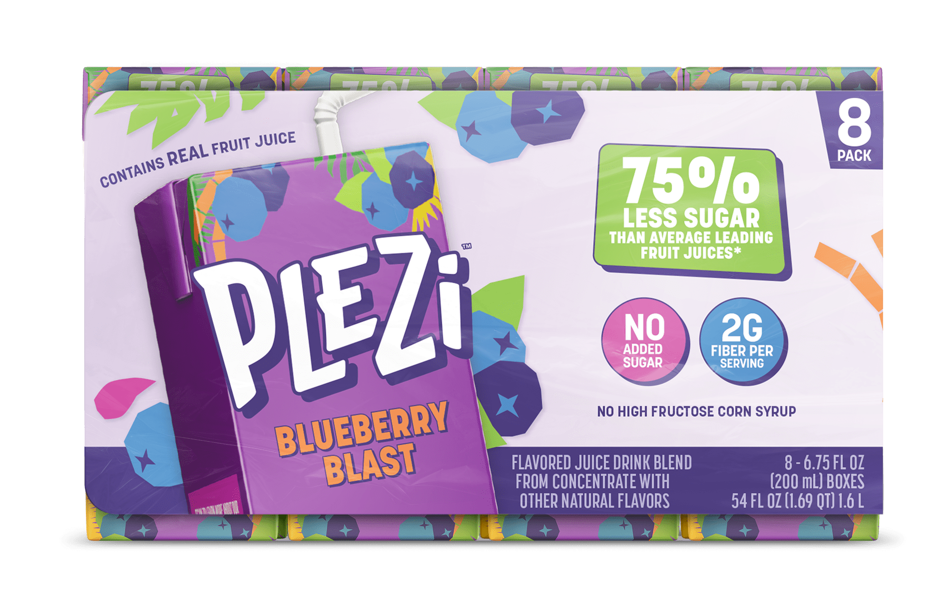 PLEZi Blueberry Blast Juice Drink 6.75 fl oz, 8 Juice Boxes