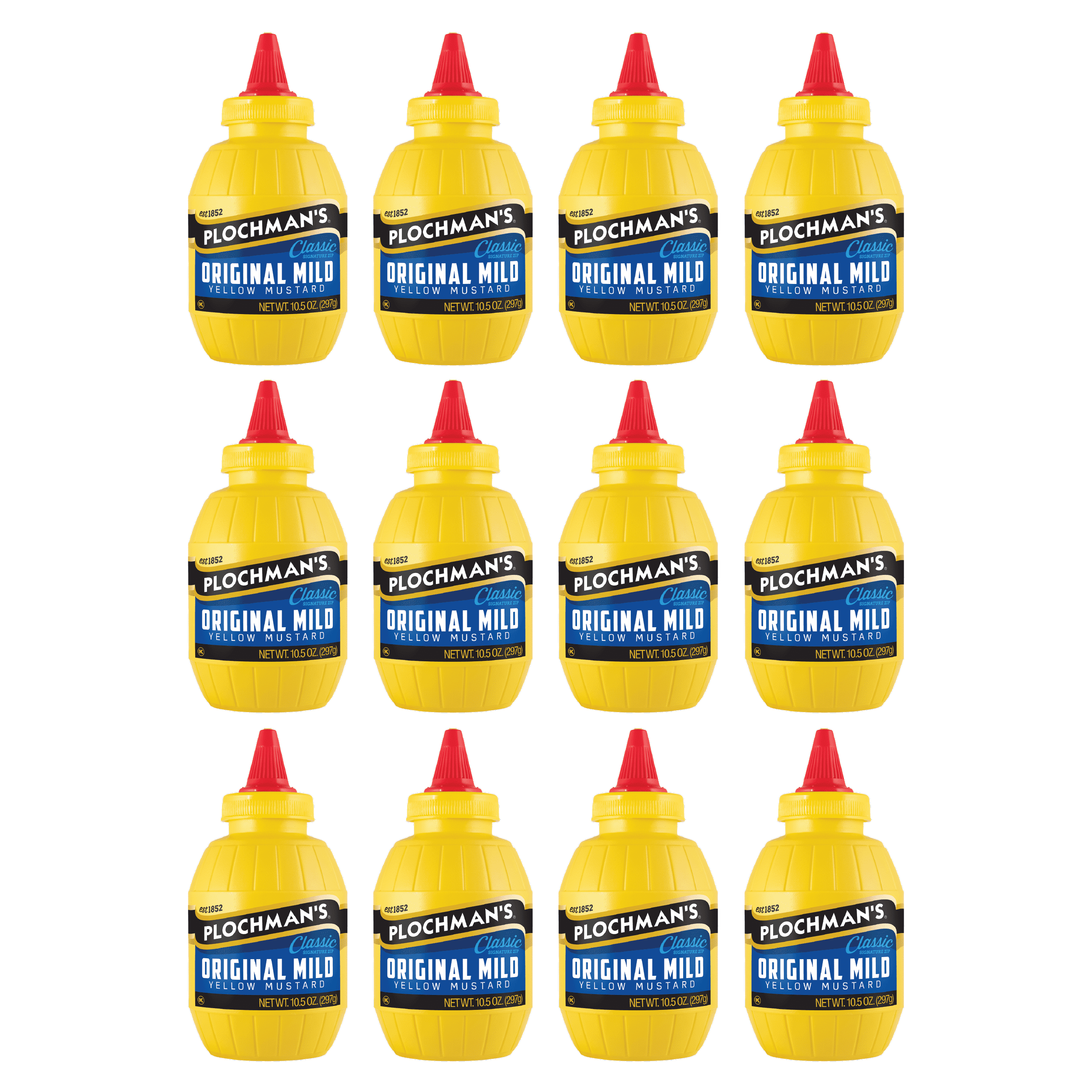 Plochman's Original Mild Classic Yellow Mustard, Classic Signature Zip, 10.5 Ounce Bottle, 12-Pack