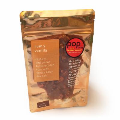 Pop Candy Rum Y Vanilla Fresh Butter Crunch Toffee | All-Natural Gourmet Candy Brittle | Corn Syrup-Free, Gluten-Free, Peanut-Free, and Soy-Free | 4 Ounces