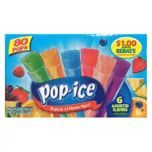 Pop-Ice Freezer Pops, Fat Free Ice Pops, Assorted Flavors (80 - 1 oz pops)