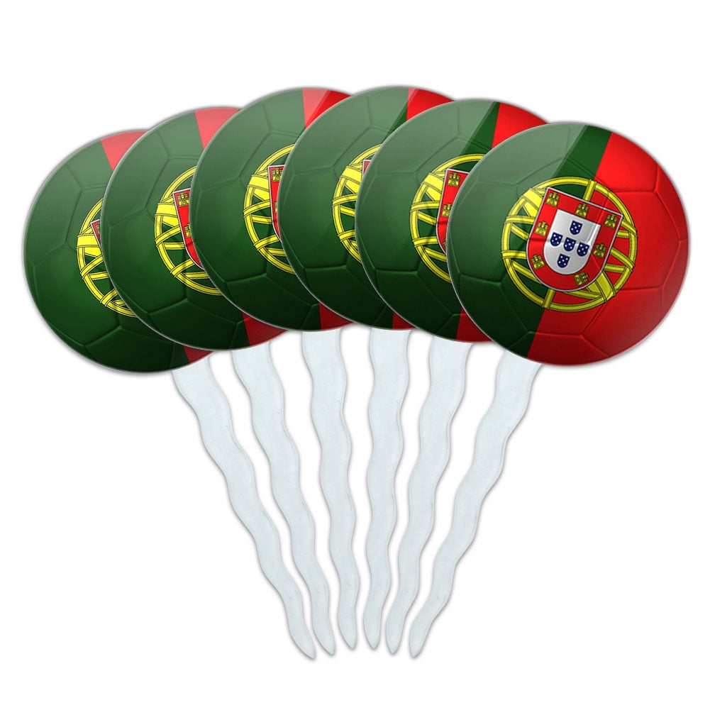 Portugal Flag Soccer Ball Futbol Football Cupcake Picks Toppers - Set of 6