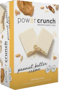 The Power Crunch Original Protein Bar in Peanut Butter Cream flavor is a protein snack that contains 13 grams of protein and 5-8 grams of sugar. Each bar weighs 1.4 oz, and the package includes 5 bars, totaling 7 oz. These bars are made with high-DH hydrolyzed Proto Whey Protein, which makes them easy to digest. The Power Crunch Protein Bars are known for their crispy wafer texture and are considered ideal snacks for any occasion, whether at home or on the go. Unfortunately, there is no information available about what people say about this specific product.