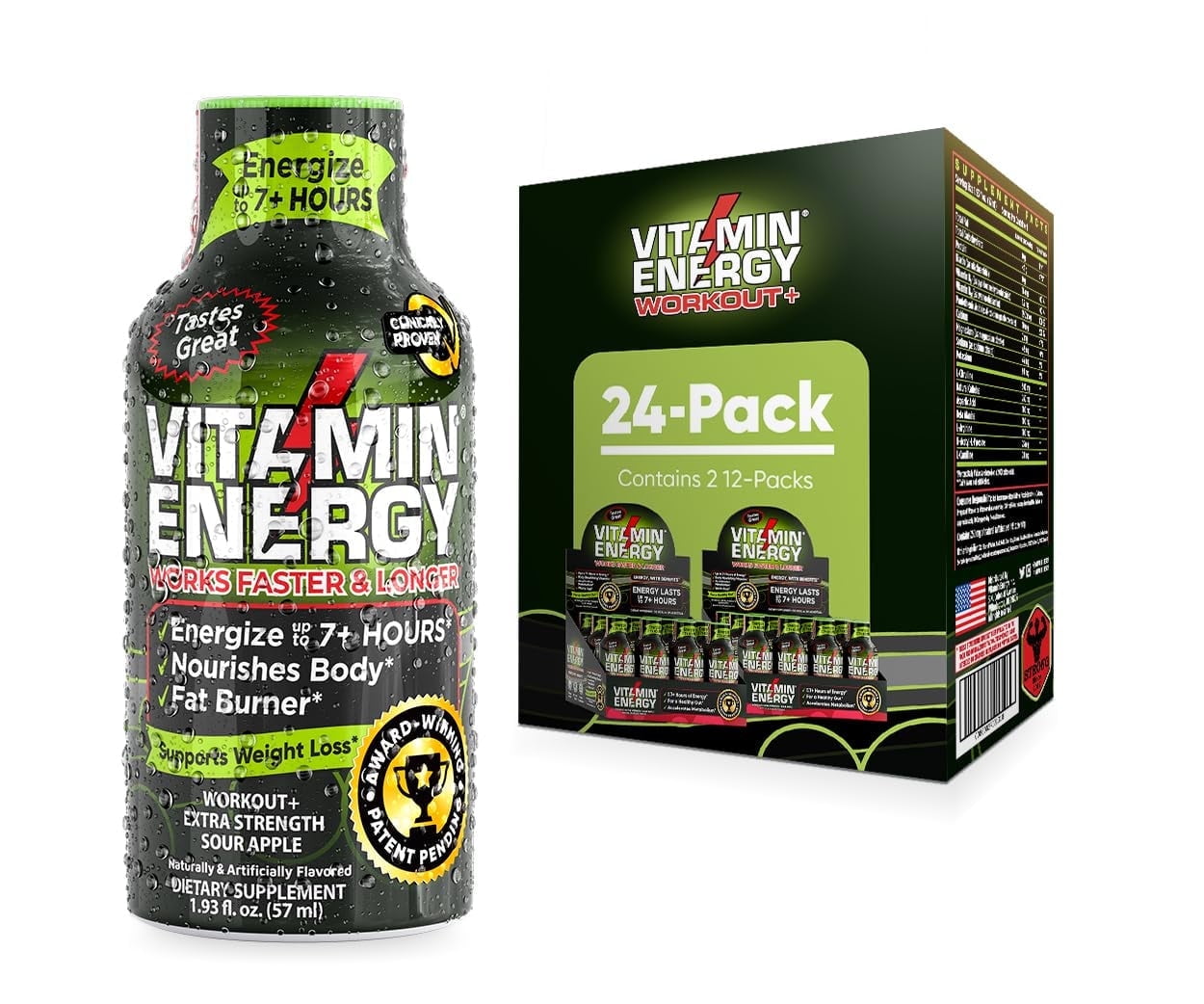 Pre Workout Vitamin Energy Drink- Keto Friendly Sugar Free Shots, Natural Clean Green Tea Caffeine with Proprietary Endurance Blend, Energize up to 7+ Hours- Sour Apple- 1.93 Fl Oz (Pack of 24)