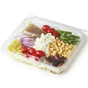 Iceberg Lettuce, Chickpeas(Prepared Chickpeas,Water,Salt,Disodiumedta,Sodiummeta Bisulfite),Red Wine Olive Vinaigrette (Canola Oil,Redwine Vinegar, Olive Oil, Sugar, Spices,Dried Garlic, Dried Bell Pepper, Xanthangum), Grape Tomatoes, Feta Cheese (Pasteu-Rized Milk, Salt, Cheese Cultures, Enzymespowdered Cellulose & Potato Starch, Natam-Ycin), Kalamata Olives (Kalamata Olives,Brine {Water, Salt}, Extra Virgin Oliveoil),Cucumbers, Pepperoncini (Pepperonciniwater, Salt, Calcium Chloride, Acetic Acidcitric Acid, Sodium Benzoate, Sodium Meta-Bisulfite, Turmeric), Red Onion, Carrots.