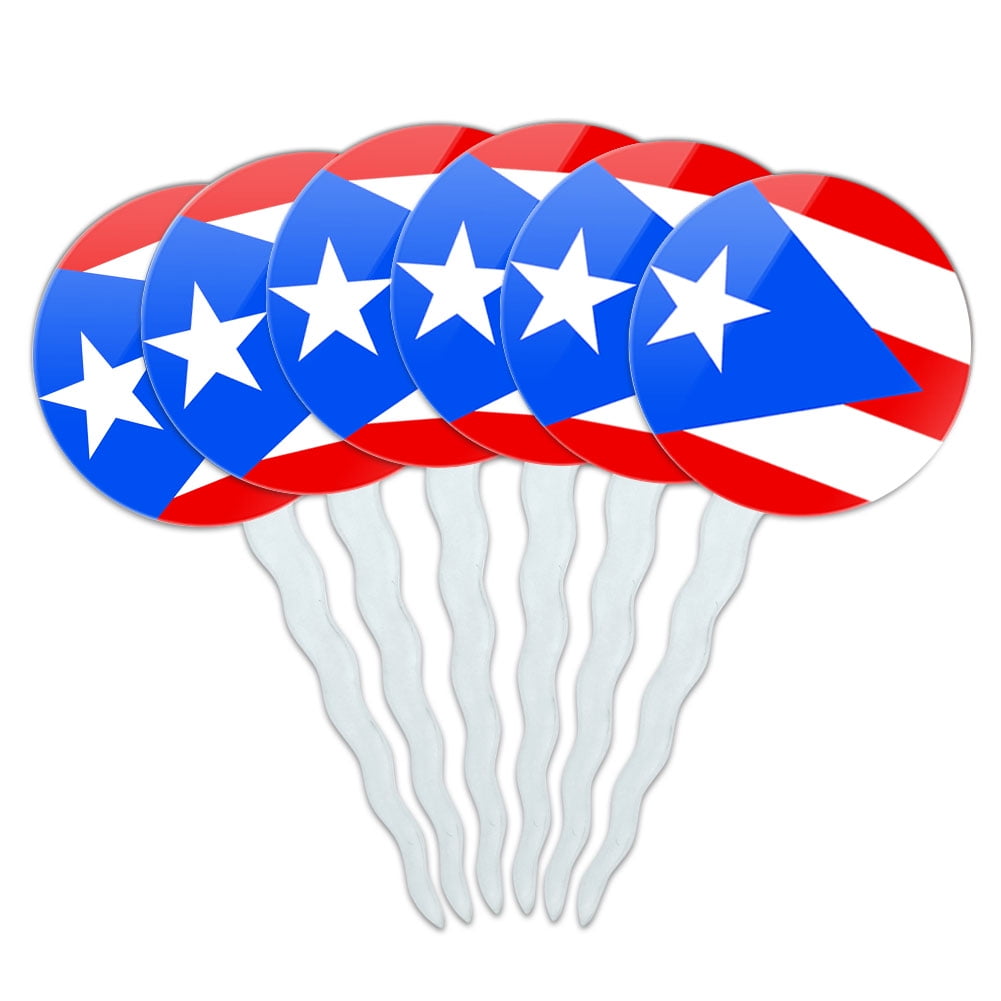 Puerto Rico National Country Flag Cupcake Picks Toppers - Set of 6
