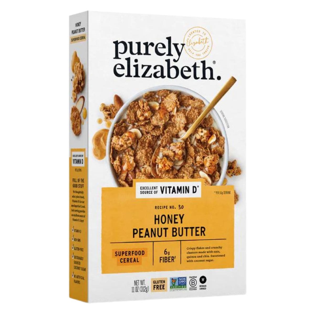 Sorghum, Organic Certified Gluten-free Oats, Almonds, Maple Syrup, Organic Coconut Oil, Organic Honey, Organic Quinoa, Organic Coconut Nectar, Organic Coconut Sugar, Peanut Butter, Cinnamon, Sea Salt, Organic Puffed Amaranth, Organic Chia Seeds, Vanilla Extract, Organic Plant- Based Vitamin D3 (vegd3), Vitamin E (mixed Tocopherols) Added To Preserve Freshness. Contains: Almonds, Coconut, Peanuts. Made In A Facility That Also Processes Soy, Milk, Eggs, Peanuts And Other Tree Nuts.