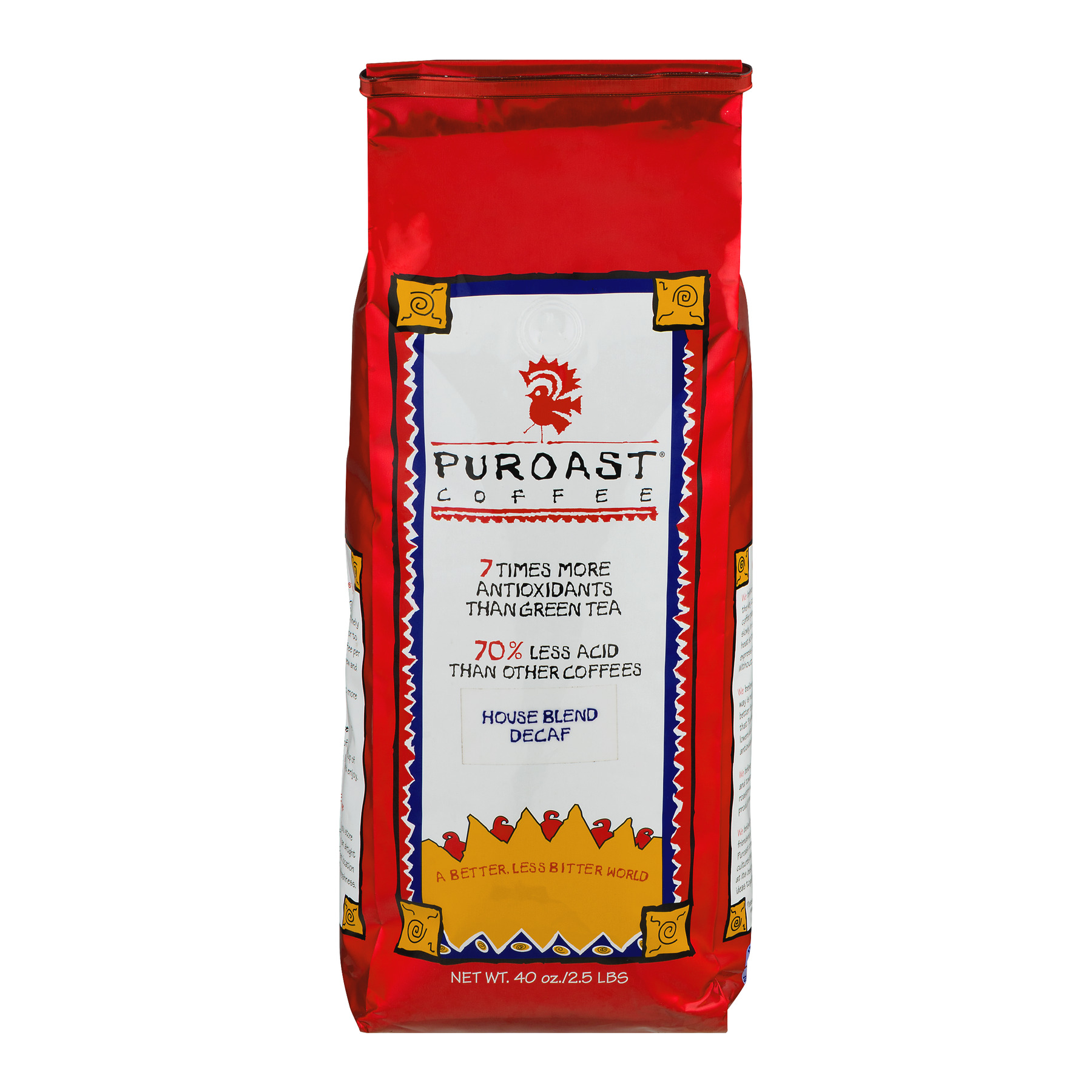 Puroast Low Acid Coffee House Blend Natural Decaf Whole Bean, 2.5-Pound Bag