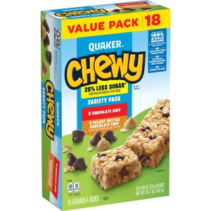 Quaker Chewy 25% Less Sugar Variety Pack Granola Bars (18 - 0.84 Ounce) 15.2 Ounce 18 Count Plastic Bag