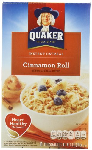 Quaker Instant Oatmeal Cinnamon Roll (10 - 1.51 Ounce) 15.1 Ounce 10 Pack Paper Box