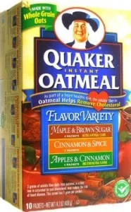 Maple & Brown Sugar Whole Grain Rolled Oats, Sugar, Natural And Artificial Flavor, Salt, Calcium Carbonate, Guar Gum, Caramel Color, Niacinamide, Reduced Iron, Vitamin A Palmitate, Pyridoxine Hydrochloride, Riboflavin, Thiamin Mononitrate, Folic Acid, Cinnamon & Spice Whole Grain Rolled Oats, Cinnamon And Other Spices, Folic Acid, Apples & Cinnamon Whole Grain Rolled Oats, Dehydrated Apples (Treated With Sodium Sulfite To Promote Color Retention), Cinnamon, Citric Acid, Malic Acid, Folic Acid, Caramel Color, One Of The B Vitamins