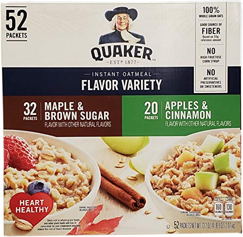 Quaker Instant Oatmeal Variety Pack, Maple & Brown Sugar, Apples & Cinnamon, 73.2 Ounce