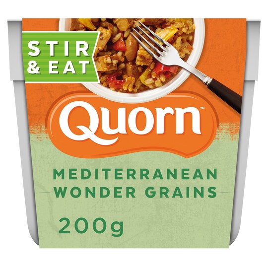 Sauce, Chopped Tomatoes , Red Pepper, Yellow Pepper, Cannellini Beans, Water, Tomato Puree, Herbs (Parsley, Basil, Oregano), Sundried Tomatoes (Sundried Tomatoes, Salt), Olive Oil, Garlic Puree, Ground Paprika, Lemon Juice Concentrate, Salt, Stabiliser: Xanthan Gum, Black Pepper), Cooked Grains, Water, Whole Grain Rice, Wheatberries, Bulgar Wheat, Quorn Pieces, Mycoprotein, Rehydrated Free Range Egg White, Potato Protein, Wheat Gluten, Roasted Onion Flakes, Rosemary Flavouring, Of Product