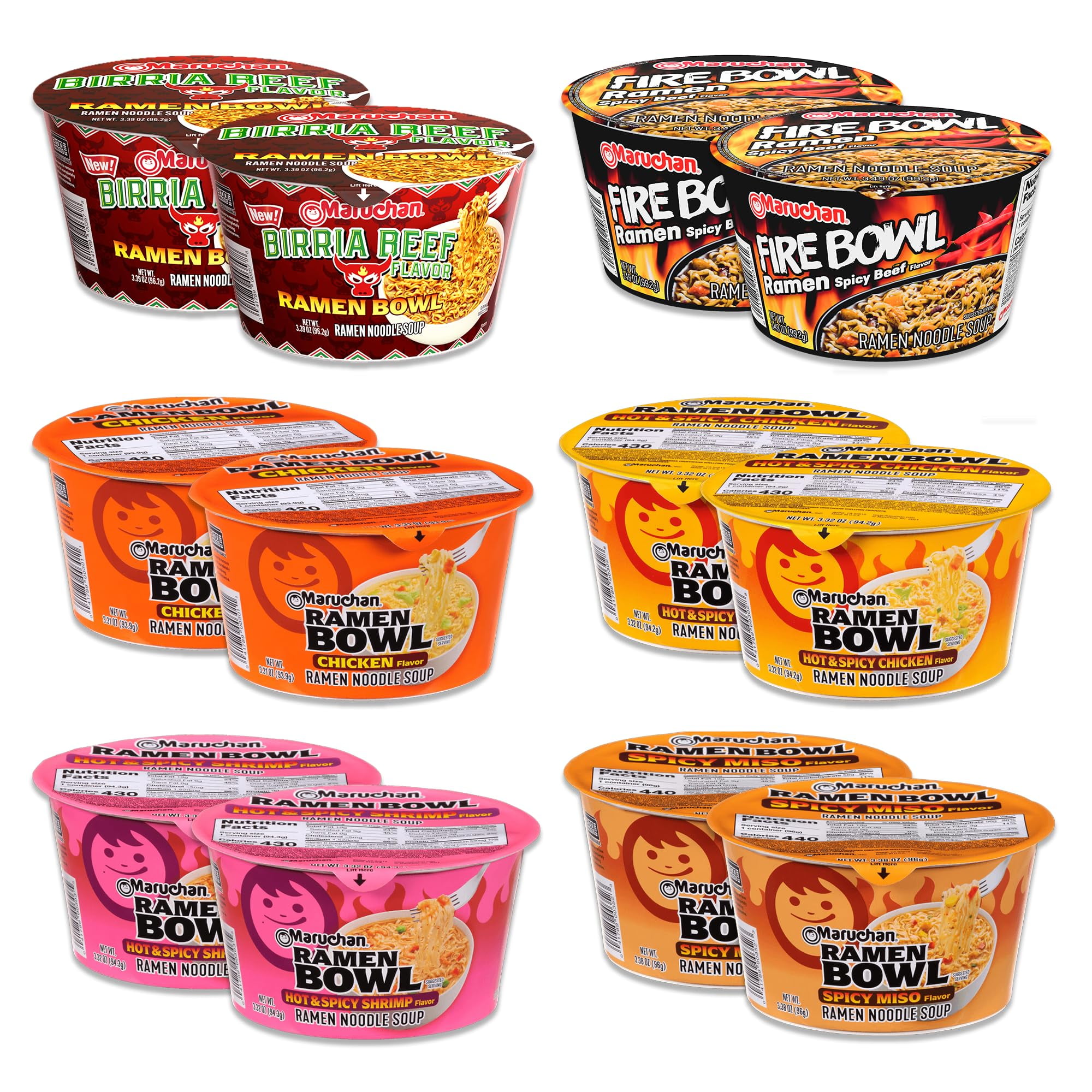 Ramen Noodles Cup Variety 12 Pack- Includes 2 Bowls Each of 6 Flavors- Birria Beef, Flaming Beef, Chicken, Spicy Miso Chicken, Hot N Spicy Shrimp, and Hot n Spicy Chicken