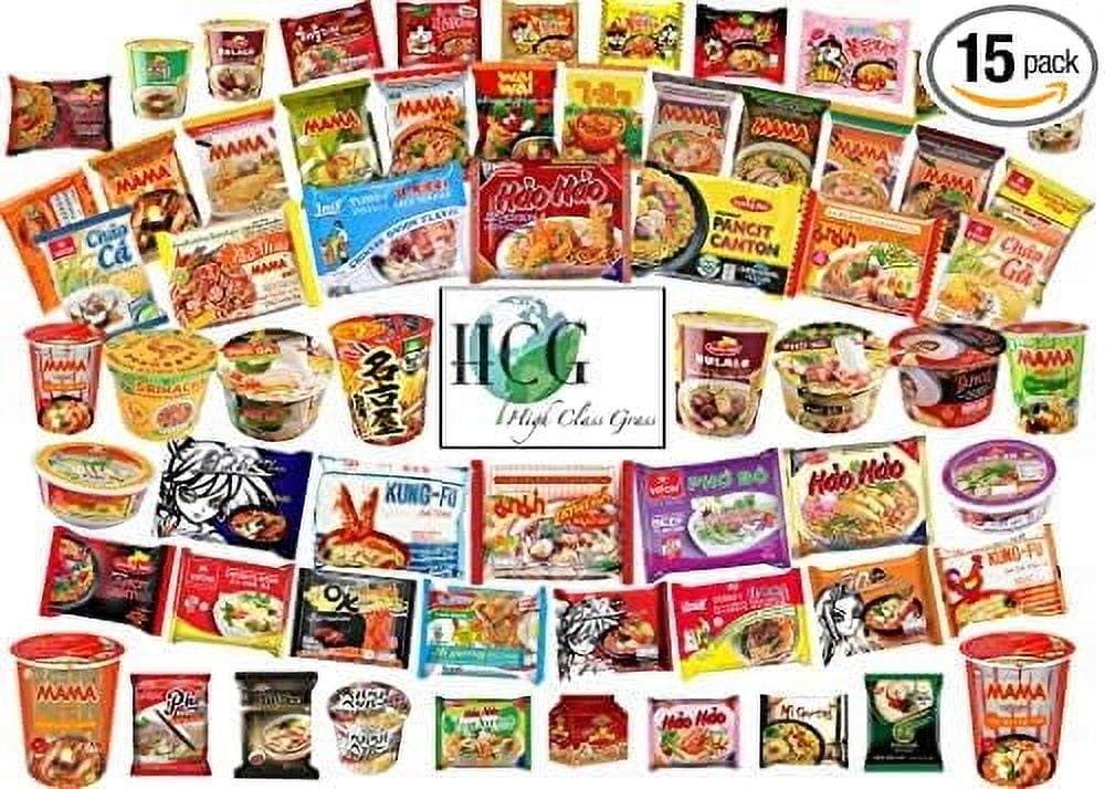 Ramen Noodles From Around The World Snack Box Variety Pack Of 15 Instant Noodles - Japanese, Filipino, Thai, Vietnamese With Around The World Sticker…