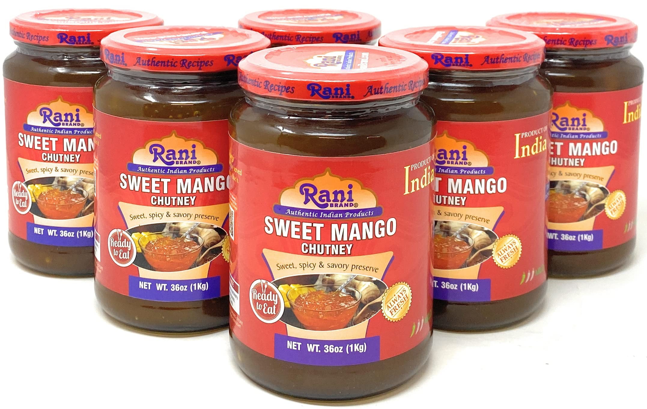 Rani Sweet Mango Chutney (Indian Preserve) 36oz (2.2lbs) 1kg Value Pack, Glass Jar, Ready to eat, Vegan, Pack of 5+1 ~ Gluten Free, All Natural, NON-GMO
