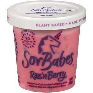 RAZ'N BERRY RASPBERRY SORBET, CRUSHED WILDBERRY SWIRL, CHOCOLATY BITS, RAZ'N BERRY
