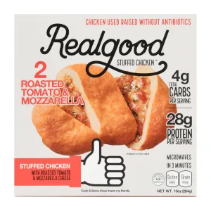 Real Good Stuffed Chicken with Roasted Tomato & Mozzarella Cheese - Low Carb 4g High Protein 28g. Grain-free, Gluten-free, 10oz Box