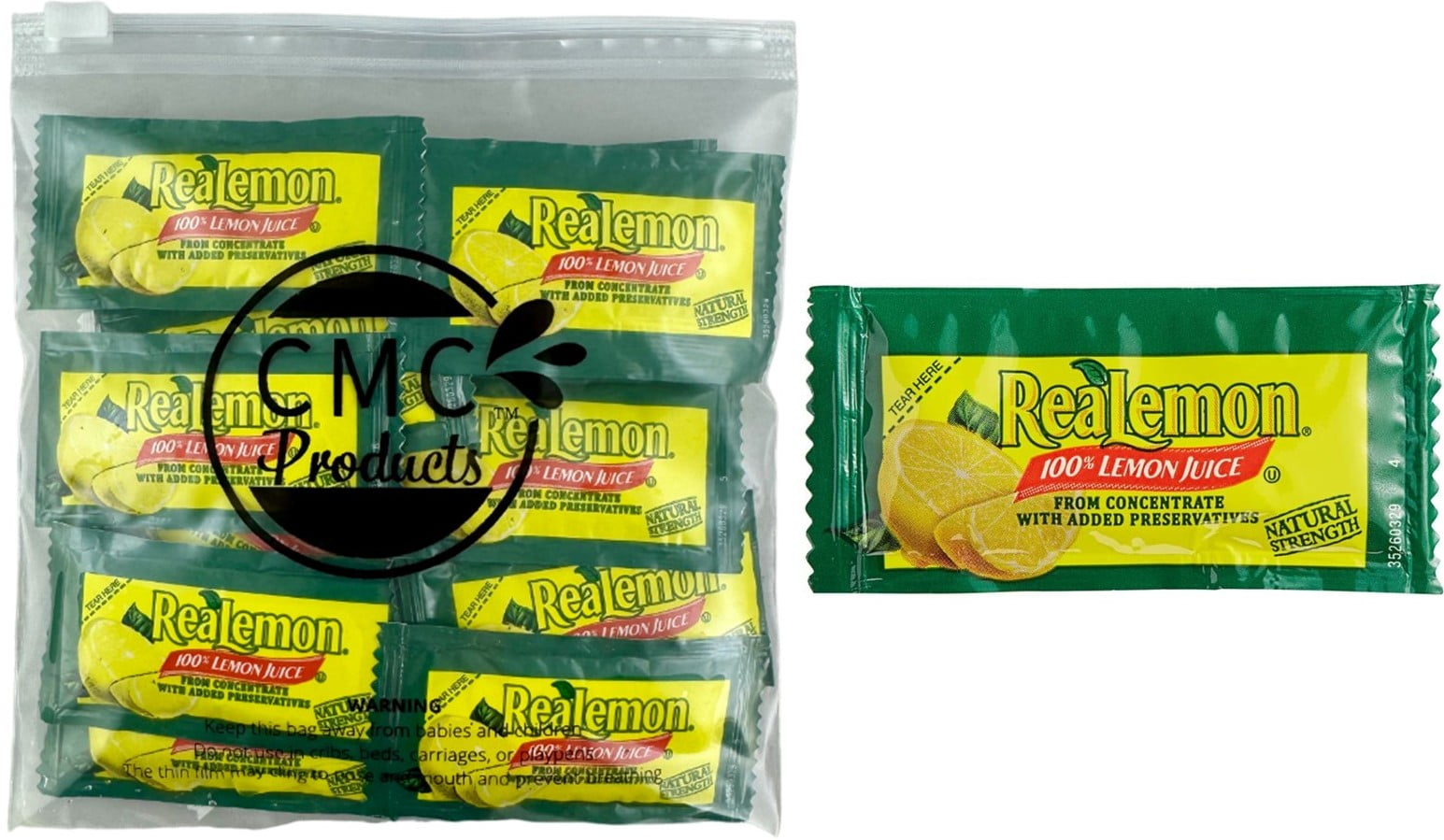 ReaLemon (4g) - 50 Lemon Juice Packets in Custom CMC Products Food Safe Slide Seal Bag, bundle, packaged by CMC Products (50 Packets)
