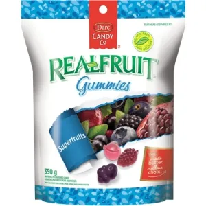 Corn Syrup, Sugar, Modified Potato Starch, Fruit Juices From Concentrate (Black Currant, Pomegranate, Elderberry And Blueberry), Fruit Purees (Pear, Cranberry, Marion Blackberry And Acai), Modified Coconut Oil, Natural Flavour, Citric Acid, Ascorbic Acid, Sodium Citrate, Carnauba Wax, May Contain Milk, Manufactured In A Nut Free/peanut Free Facility