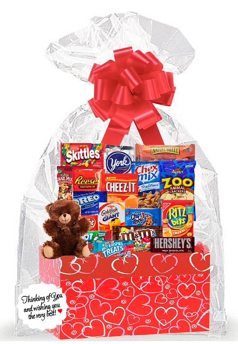 Red Hearts Valentines Day Thinking Of You Cookies, Candy & More Care Package Snack Gift Box Bundle Set