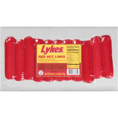 MECHANICALLY SEPARATED CHICKEN, WATER, PORK, SALT, CORN SYRUP SOLIDS, CONTAINS 2% OR LESS OF MODIFIED FOOD STARCH, DEXTROSE, SPICES, FLAVORINGS, DEHYDRATED ONION, PAPRIKA, SODIUM PHOSPHATE, SMOKE FLAVORING, POTASSIUM LACTATE, POTASSIUM ACETATE, SODIUM DIACETATE, MONOSODIUM GLUTAMATE, LACTIC ACID, SODIUM ERYTHORBATE, SODIUM NITRITE, RED NO. 3, RED NO. 40.