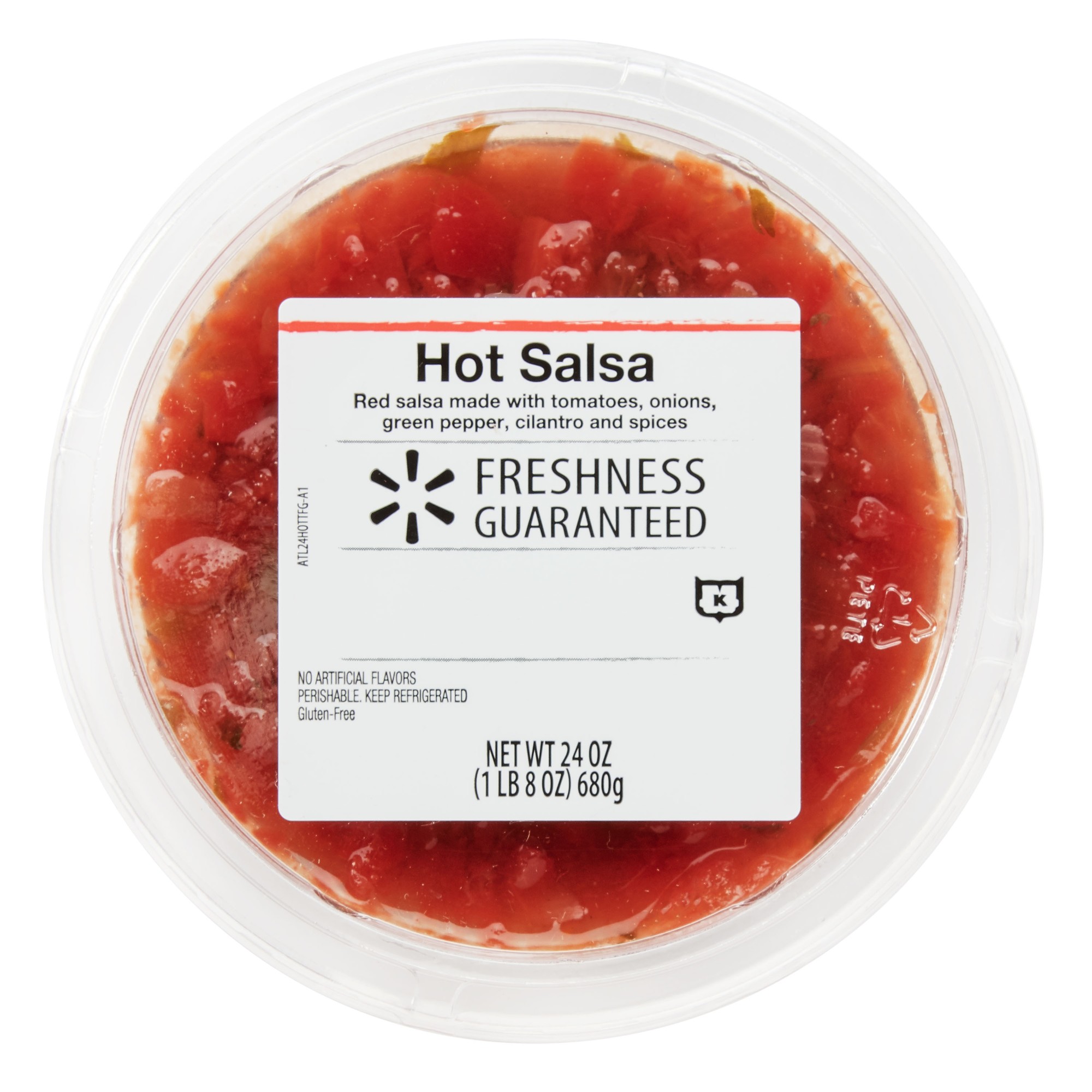 RED HOT SALSA MADE WITH TOMATOES, ONIONS, GREEN PEPPER, CILANTRO AND SPICES, HOT