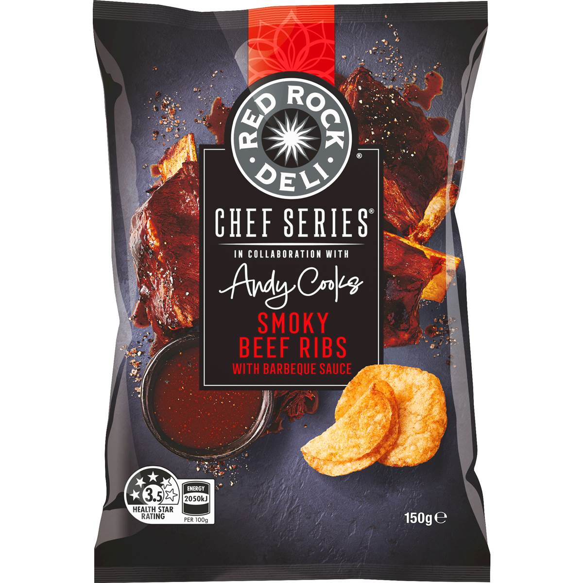 Red Rock Deli Chef Series Potato Chips Smoky Beef Ribs With BBQ Sauce 150g