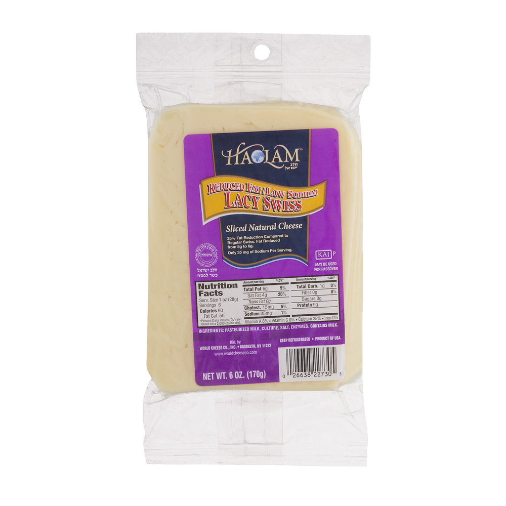 REDUCED FAT / LOW SODIUM LACY SWISS SLICED NATURAL CHEESE, LACY SWISS