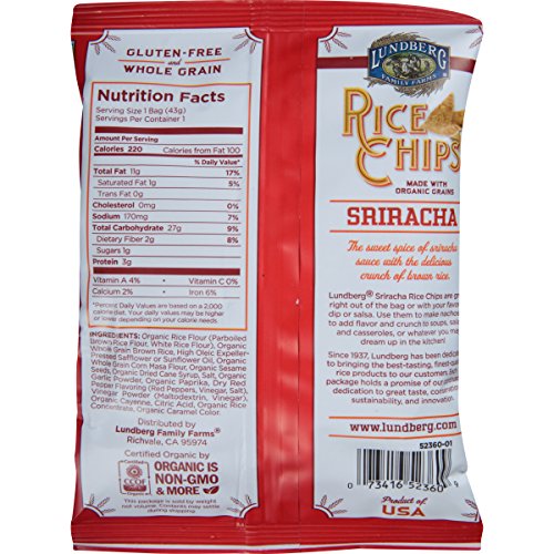 ORGANIC RICE FLOUR (PARBOILED BROWN RICE FLOUR, WHITE RICE FLOUR), ORGANIC WHOLE GRAIN BROWN RICE, HIGH OLEIC EXPELLER-PRESSED SAFFLOWER OR SUNFLOWER OIL, ORGANIC WHOLE GRAIN CORN MASA FLOUR, ORGANIC SESAME SEEDS, ORGANIC DRIED CANE SYRUP, SALT, ORGANIC GARLIC POWDER, ORGANIC PAPRIKA, DRY RED PEPPER FLAVORING (RED PEPPERS, VINEGAR, SALT), VINEGAR POWDER (MALTODEXTRIN, VINEGAR), ORGANIC CAYENNE, CITRIC ACID, ORGANIC RICE CONCENTRATE, ORGANIC CARAMEL COLOR.
