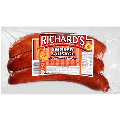 Richard's Cajun Foods Hot Smoked Pork & Beef Sausage, 16 Oz.