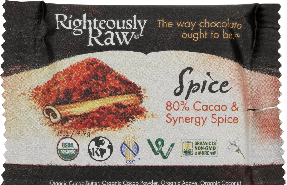 Righteously Raw, Bar 80% Raw Cacao Synergy Spice Gluten Free Organic Vegan, 0.35 Ounce