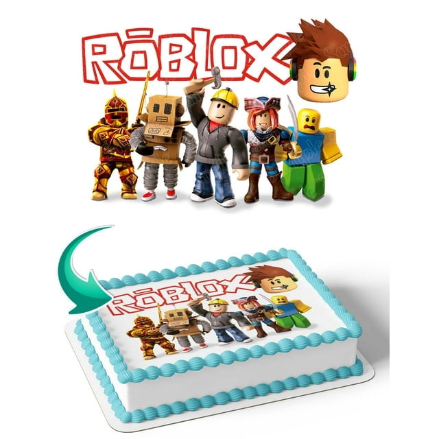 Robot Ro-Blox Logo Edible Image Cake Topper For Quarter Sheet Cake By TNCT