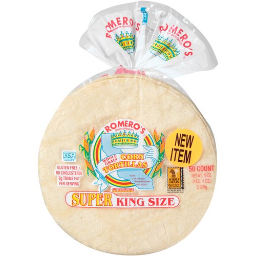 Romero's Corn Whole Grain Super King SizeTortillas, 50 ct, 75 oz