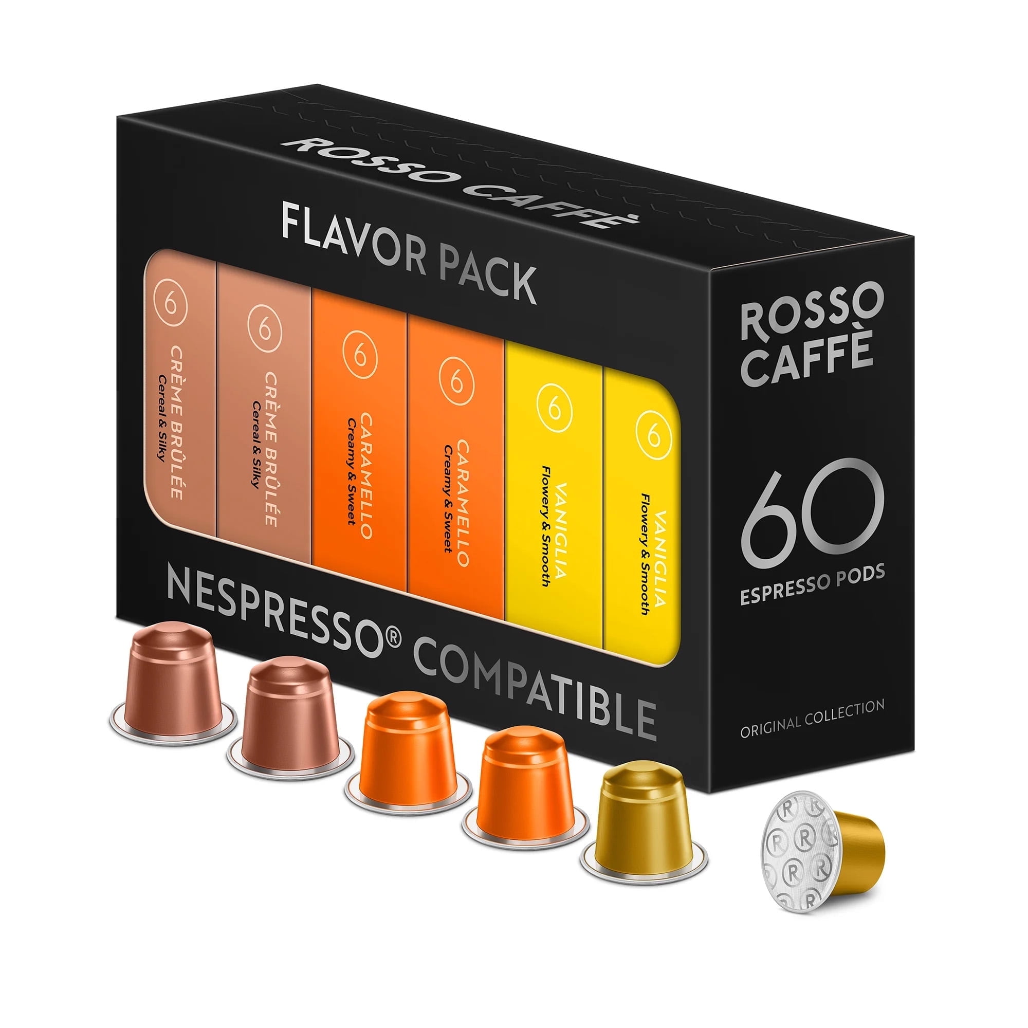 Rosso Caffe Medium Roast Coffee Pods, Variety pack, 60 Ct, Compatible with Nespresso Machines