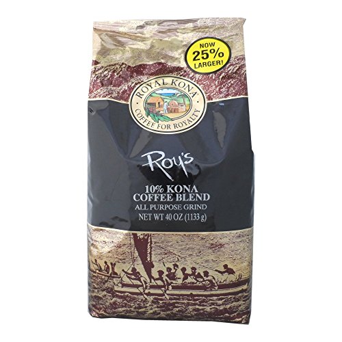 Royal Kona Coffee, Roy's Signature Series, Ground, 10% Kona Coffee Blend (40 Oz./2.5 Pound Bag) Roasted to Perfection in Hawaii