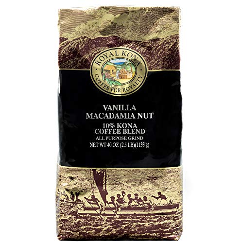 Royal Kona Coffee, Vanilla Macadamia Nut, Ground, 10% Kona Coffee Blend (40 Oz./2.5 Pound Bag) Roasted to Perfection in Hawaii