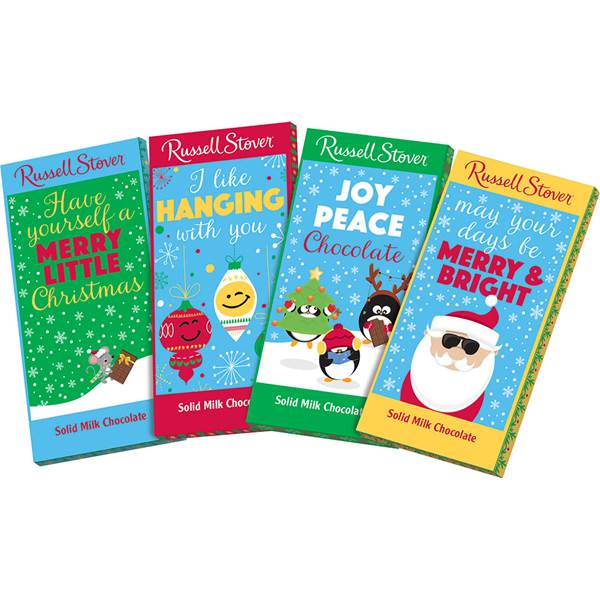 RUSSELL STOVER, SOLID MILK CHOCOLATE, MERRY & BRIGHT