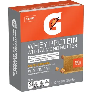 SALTED CARAMEL FLAVORED LOWER SUGAR WHEY PROTEIN BARS WITH ALMOND BUTTER, SALTED CARAMEL
