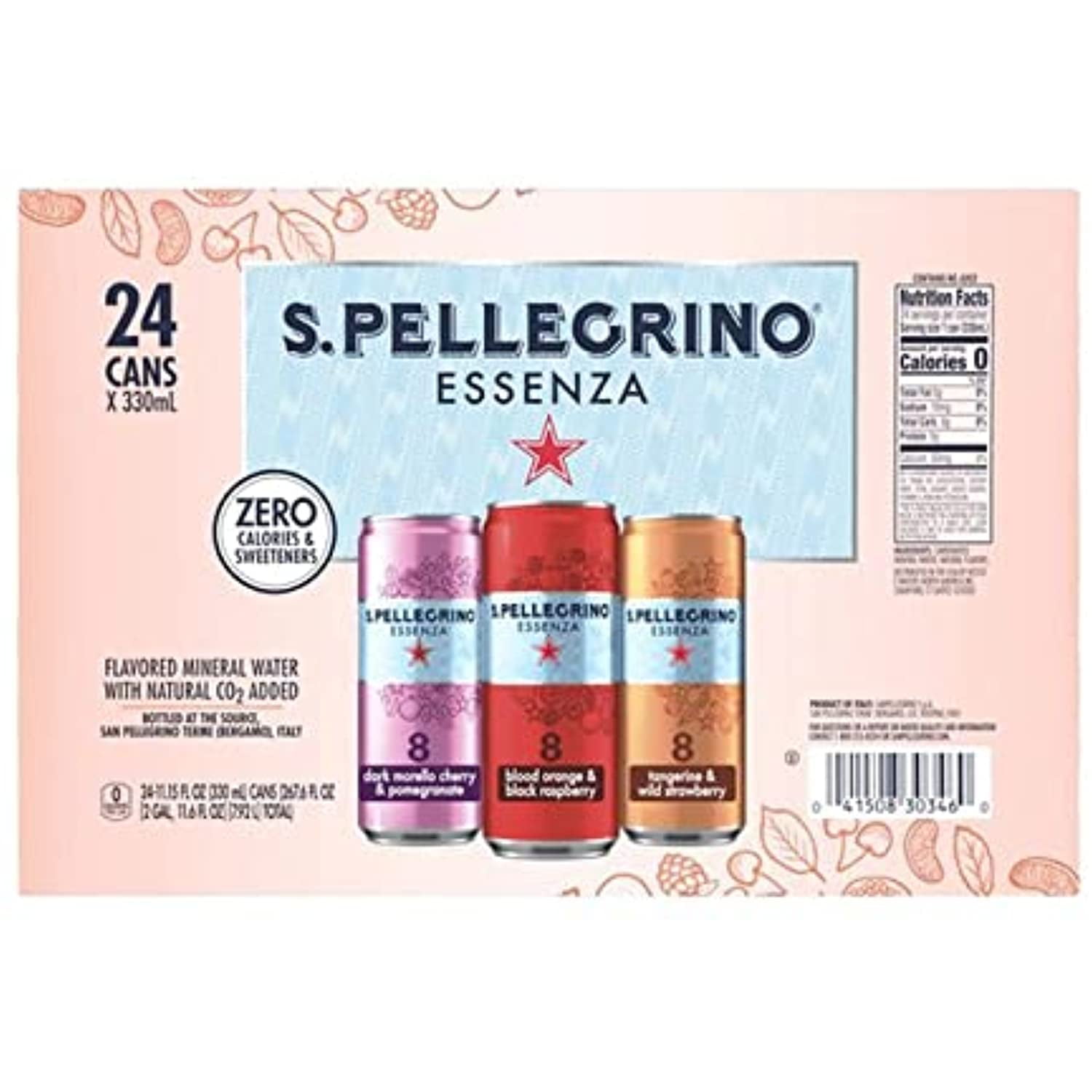 San Pellegrino Essenza Variety - Dark Morello Cherry & Pomegranate With Tangerine And Wild Strawberry And Blood Orange And Black Raspberry 24/11.15 Oz Cans. (1 - Pack)