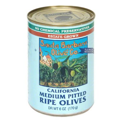SANTA BARBARA CALIFORNIA MEDIUM PITTED RIPE BLACK OLIVES, 6 OZ