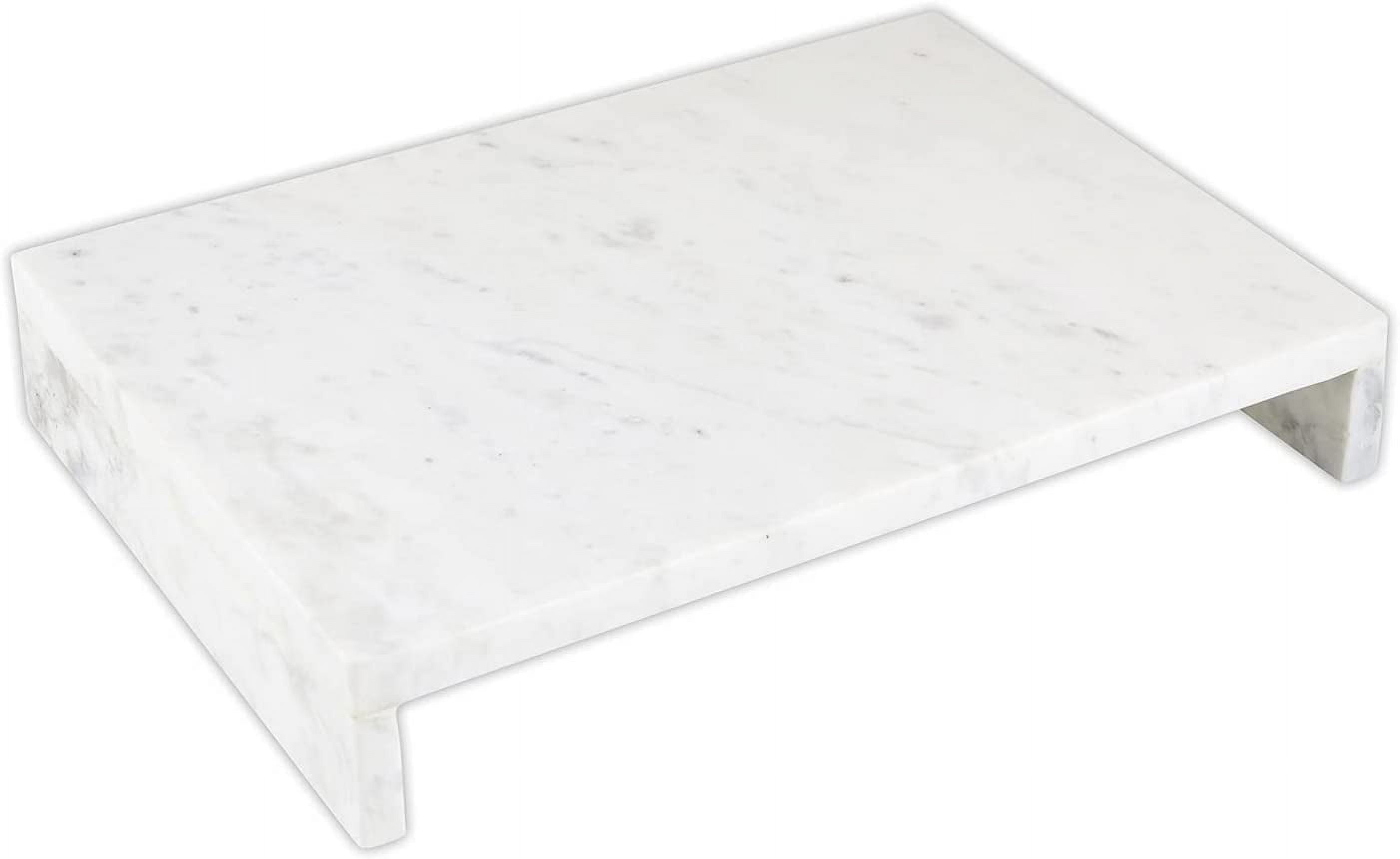 Santa Barbara Design Studio Marble Cheese Board Footed Tray Waterfall Riser Stand, 14" L x 10" W x 2.5" H, White