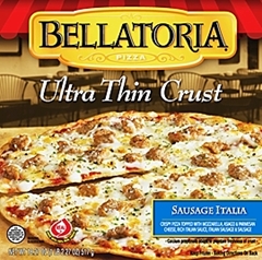 Toppings: Cheese: Low Moisture Part Skim Mozzarella Cheese (Cultured Pasteurized Part Skim Milk, Salt, Enzymes). Sauce: Water, Tomato Paste, Modified Food Starch, Sugar, Salt, Spices (Including Oregano), Maltodextrin, Dextrose, Garlic And Onion, Citric Acid, Guar Gum, Beet Powder, Extractive Of Paprika. Italian Sausage: Pork, Spices, Salt, Dextrose, Garlic Powder, Paprika, Flavorings. Sausage: Pork, Water, Spices, Salt, Dextrose, Garlic Powder, Paprika. Asiago: (Pasteurized Milk, Cheese Cultures, Salt And Enzymes), Powdered Cellulose (To Prevent Caking). Parmesan: (Made From Pasteurized Part-Skim Cow's Milk, Culture, Salt, Cornstarch And Powdered Cellulose To Prevent Caking). Spice Blend: Spices (Oregano, Pepper, Basil), Maltodextrin, Onion & Garlic, Soybean Oil, Parsley, Parsley Flakes. Ultra Thin Crust: Enriched Flour (Wheat Flour, Niacin, Reduced Iron, Thiamine Mononitrate, Riboflavin, Enzyme, Folic Acid), Water, Soybean Oil, Yeast, Dextrose, Calcium Propionate (Preservative), Olive Oil, Salt, Dough Conditioner (Sodium Metabisulfite) And Soy Lecithin.