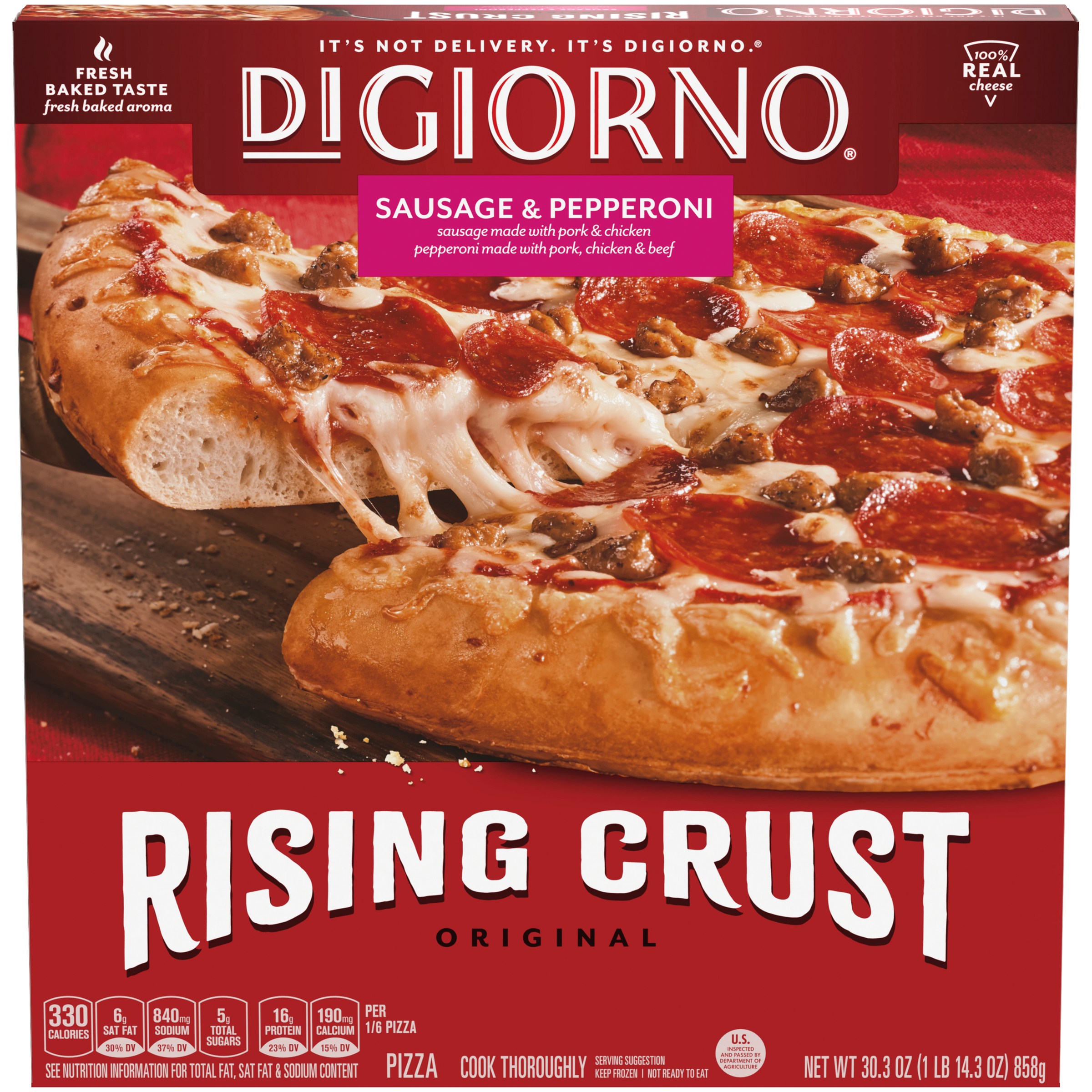 SAUSAGE & PEPPERONI SAUSAGE MADE WITH PORK & CHICKEN. PEPPERONI MADE WITH PORK, CHICKEN & BEEF. ORIGINAL RISING CRUST PIZZA, SAUSAGE & PEPPERONI is available at 7 retailers