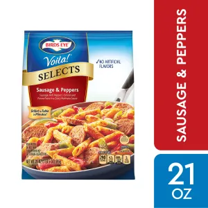 Vegetables (Green Bell Peppers, Red Bell Peppers), Cooked Enriched Macaroni Product (Water, Enriched Durum Wheat Semolina (Semolina, Niacin, Ferrous Sulfate, Thiamine Mononitrate, Riboflavin, Folic Acid)), Sauce (Water, Tomato Paste, Extra Virgin Olive Oil, Tomatoes, Parmesan Cheese ((Pasteurized Part Skim Milk, Cheese Cultures, Salt, Enzymes), Starch And Cellulose (Anti-caking Agent)), Garlic Puree (Garlic, Evaporated Cane Syrup, Sea Salt), Sugar, Salt, Romano Flavor (Dehydrated Romano Cheese (Part-skim Cow's Milk, Cheese Culture, Salt, Enzymes), Sodium Phosphate), Natural Flavors, Spices, Modified Food Starch), Cooked Italian Sausage (Pork, Water, Salt, Spice, Corn Syrup, Dextrose, Flavoring, Bha, Bht, And Citric Acid Added To Help Protect Flavor)