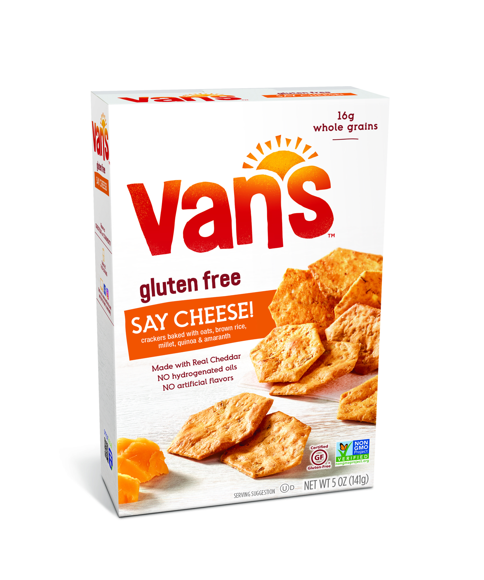 Van's Gluten Free Whole Grain Blend (Oats, Brown Rice Flour, Millet, Quinoa, Amaranth), Non-gmo Expeller Pressed Sunflower, Safflower Oil, Potato Starch, Cheddar Cheese Blend (Cheddar Cheese (Cultured Milk, Salt, Enzymes), Whey, Buttermilk, Salt, Disodium Phosphate), Rice Flour, Brown Sugar, Yeast Extract, Salt, Sesame Seeds, Sunflower Lecithin, Spices, Natural Flavors, Beta Carotene (For Color), Citric Acid, Annatto Extract (For Color), Mixed Tocopherols For Freshness, Contains: Milk
