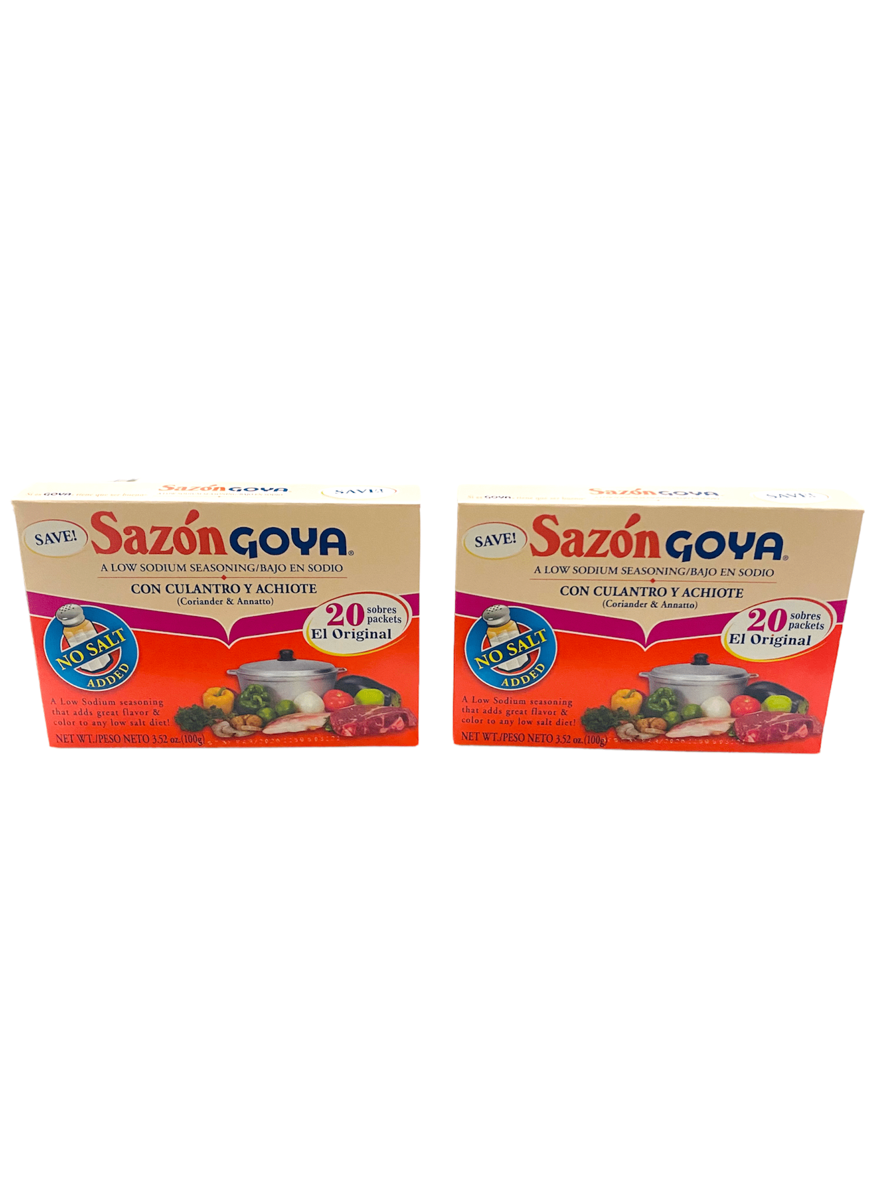 Sazon Goya Low Sodium Seasoning Con Culantro Y Achiote 3.52 oz Pack of 2