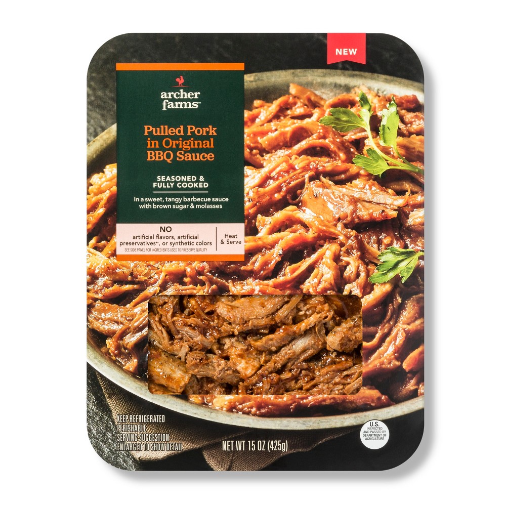 SEASONED PULLED PORK IN ORIGINAL BARBECUE SAUCE SEASONED PORK IN A SWEET & TANGY BARBECUE SAUCE MADE WITH BROWN SUGAR & MOLASSES, SEASONED PULLED PORK IN ORIGINAL BARBECUE SAUCE