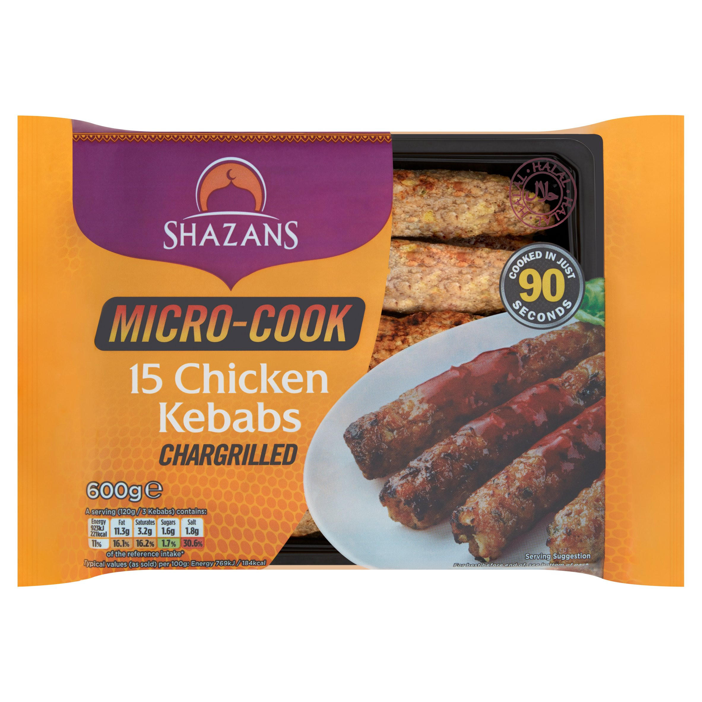 Shazans Micro-Cook 15 Chicken Kebabs Chargrilled 600g
