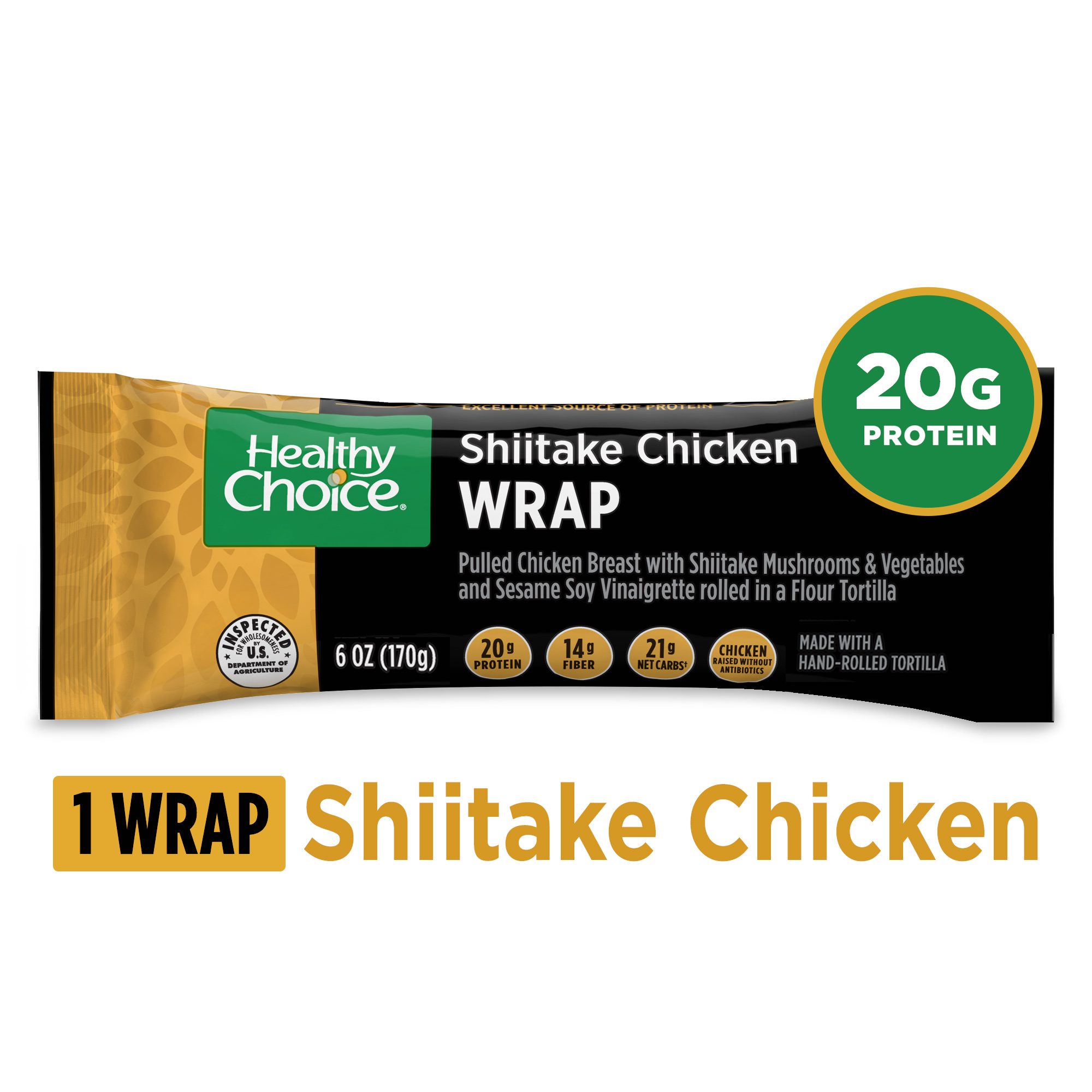 Filling (Seasoned Cooked Chicken (Chicken Breast, Water, Olive Oil, Brown Sugar, Sea Salt, Natural Flavorings), Sauce (Water, Soy Sauce (Water, Wheat, Soybeans, Salt, Alcohol, Vinegar, Lactic Acid), Sesame Oil, Honey, Garlic, Rice Vinegar, Brown Sugar, Corn Starch, Ginger Puree, Canola Oil, Cooking Wine (White Wine, Natural Flavor, Salt), Garlic Powder, Sugar, Ginger, Chili Paste (Red Chili Peppers, Distilled Vinegar, Salt, Xanthan Gum)), Carrots, Shiitake Mushrooms, Red Bell Peppers, Edamame, Chard, Kale, Spinach, Potato Starch), Tortilla (Water, Enriched Wheat Flour (Wheat Flour, Niacin, Reduced Iron, Thiamine Mononitrate, Riboflavin, Folic Acid), Wheat Gluten, Sugarcane Fiber, Canola Oil, Contains 2% Or Less Of: Trisodium Phosphate, Salt, Guar Gum, Lactic Acid, Yeast, Ascorbic Acid, Vegetable Oil, Palm Oil, Fumaric Acid, Sodium Metabisulfite, Sorbitan Monostearate), Contains: Soy, Wheat